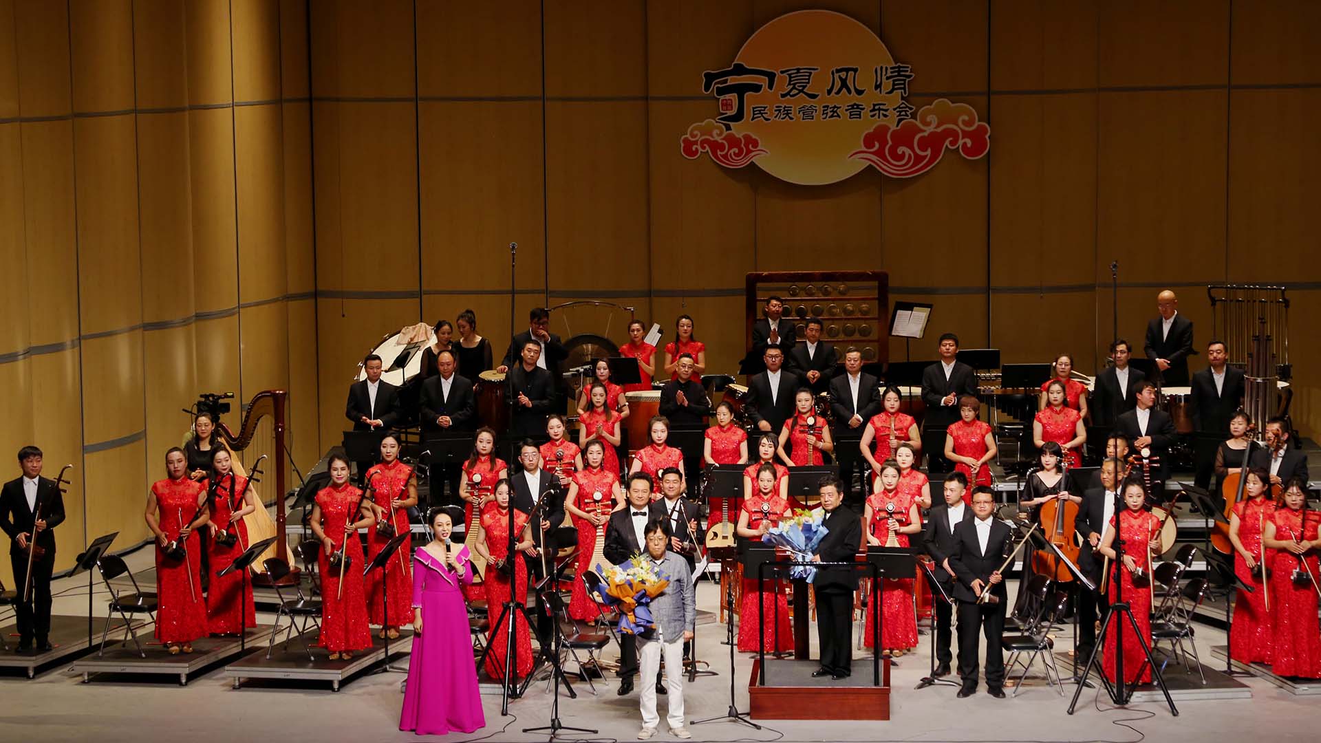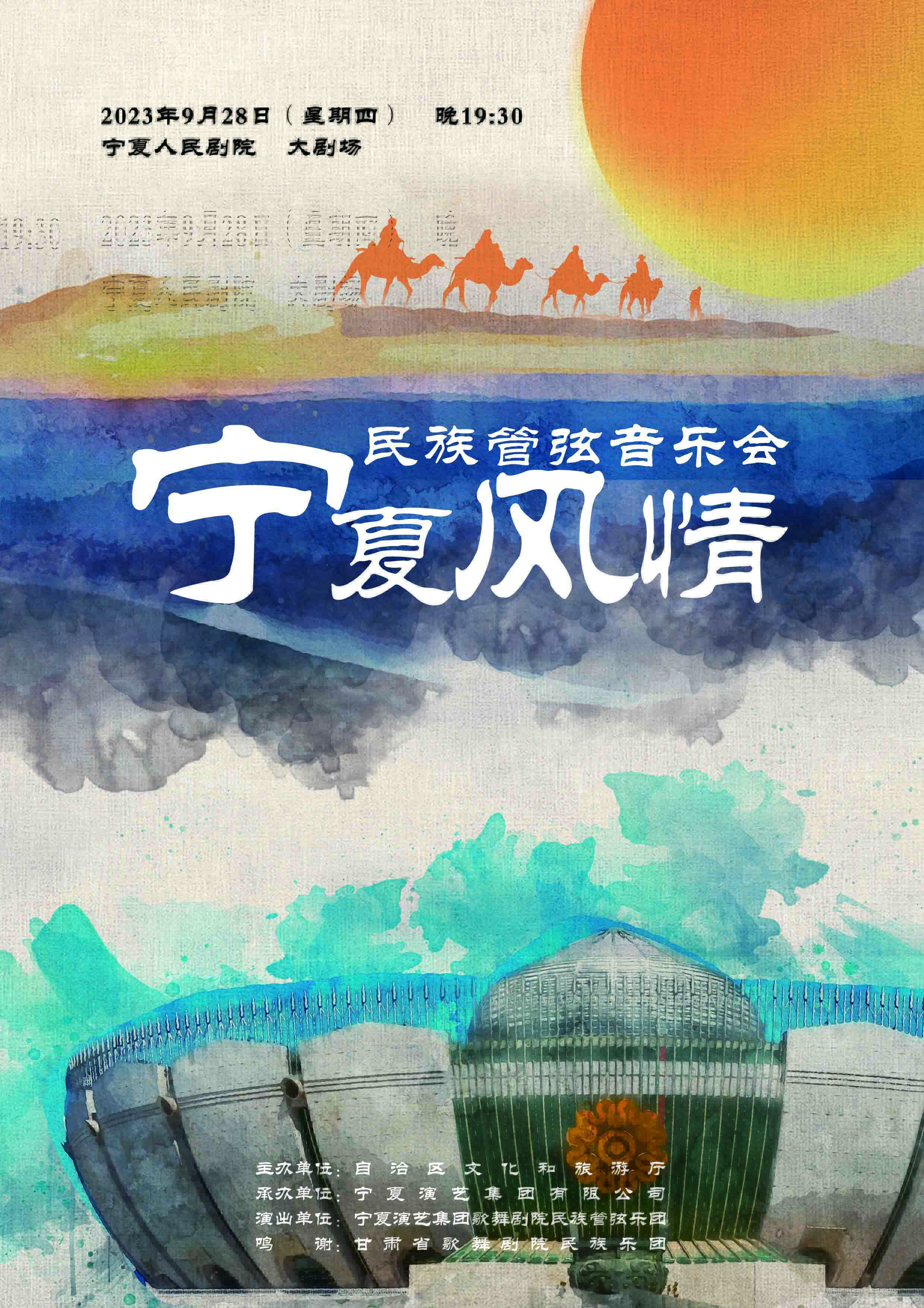 民族管弦乐《宁夏风情》展现宁夏地区社会繁荣,百姓兴旺,安居乐业的一片繁荣景象。在黄河大漠,边塞“花儿”视听中感受时代感与乡土情,在西部风情的流动中,带领你走进宁夏。它是宁夏各族儿女积极奋进的写照,再现文明历史、自然风光、和谐社会的灿烂美景、幸福家园的美好生活和未来。伴随黄河悠远的涛声,承载着宁夏多少梦想,唱响新时代伟大民族复兴的豪情。